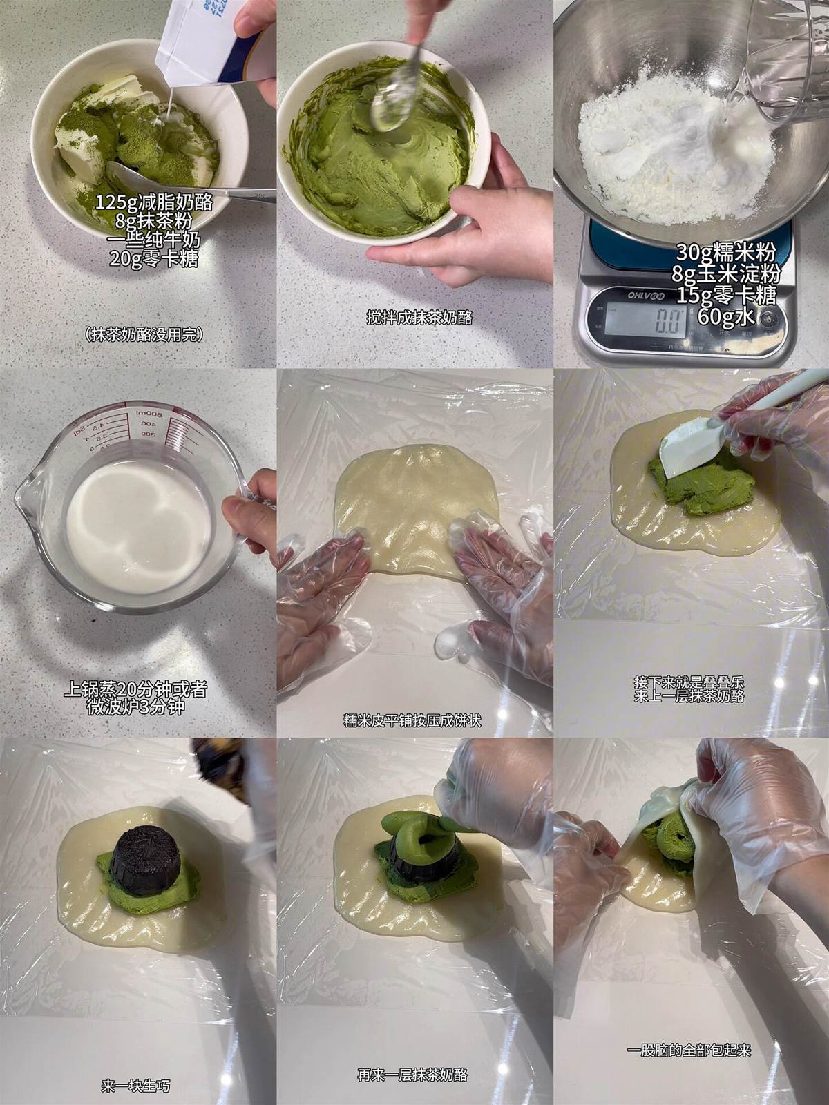 調抹茶乳酪:把乳酪、抹茶粉、零卡糖和純牛奶攪成順滑的抹茶乳酪糊,備用。做糯米皮:糯米粉、玉米澱粉、零卡糖和水混合均勻,上鍋蒸 20 分鐘(或微波爐叮 3 分鐘),放涼後揉成光滑麵糰。包糰子: 取一塊糯米皮,在保鮮膜上按壓成薄餅狀先抹一層抹茶乳酪,放上一塊生巧再抹一層抹茶乳酪,像包包子一樣把糯米皮全部兜起來,捏緊封口冷藏定型 1 小時後口感最佳!一口咬下去,糯嘰嘰的外皮裹著綿密的抹茶乳酪,還有生巧在嘴裡化開,三重口感直接香迷糊!!減脂期也能放心炫的快樂誰懂啊