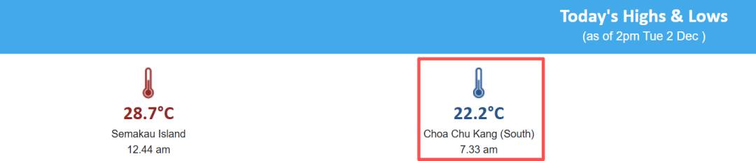 蔡厝港甚至低至22度,不少网友调侃:今天全岛开了免费的空调。