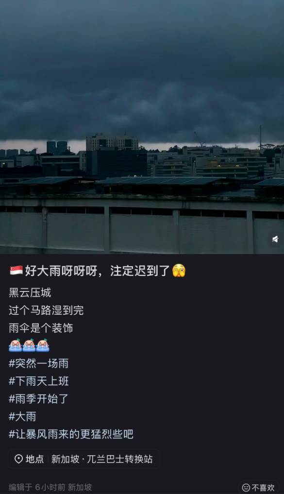新加坡今早黑云压城,又下起了暴雨,想必不少“牛马”都迟到了吧?