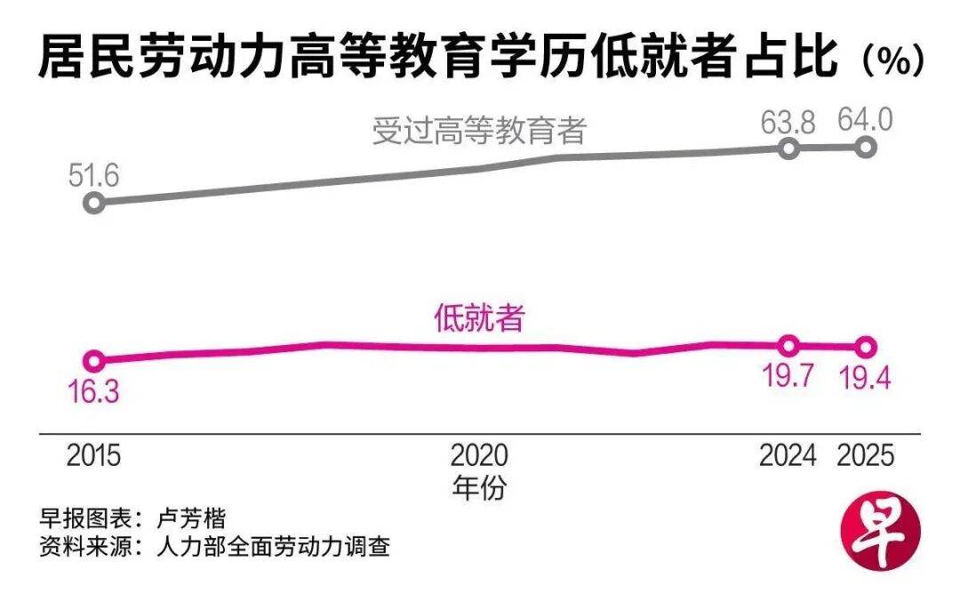 人力部的数据也显示,35岁以下的青年在非自愿低就者中占比超过三分之一。
