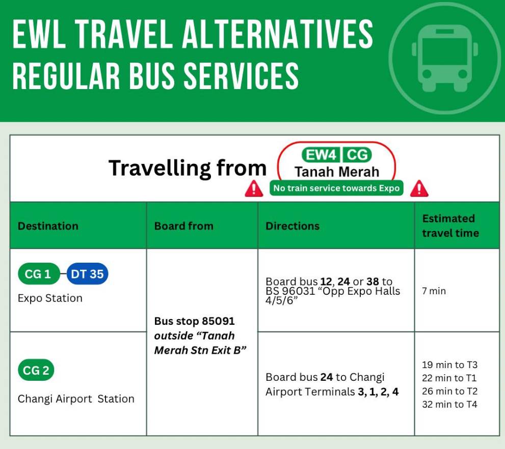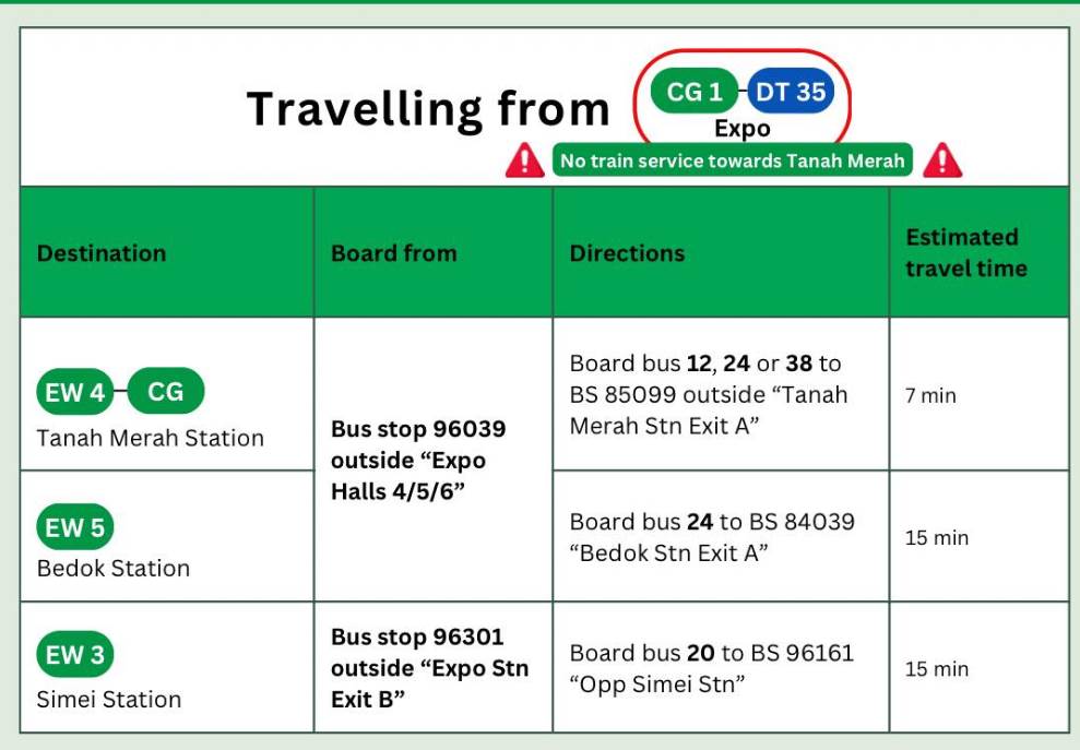 这次停运主要影响的是“丹那美拉→博览站→樟宜机场”这段,接驳方式帮大家整理好啦~