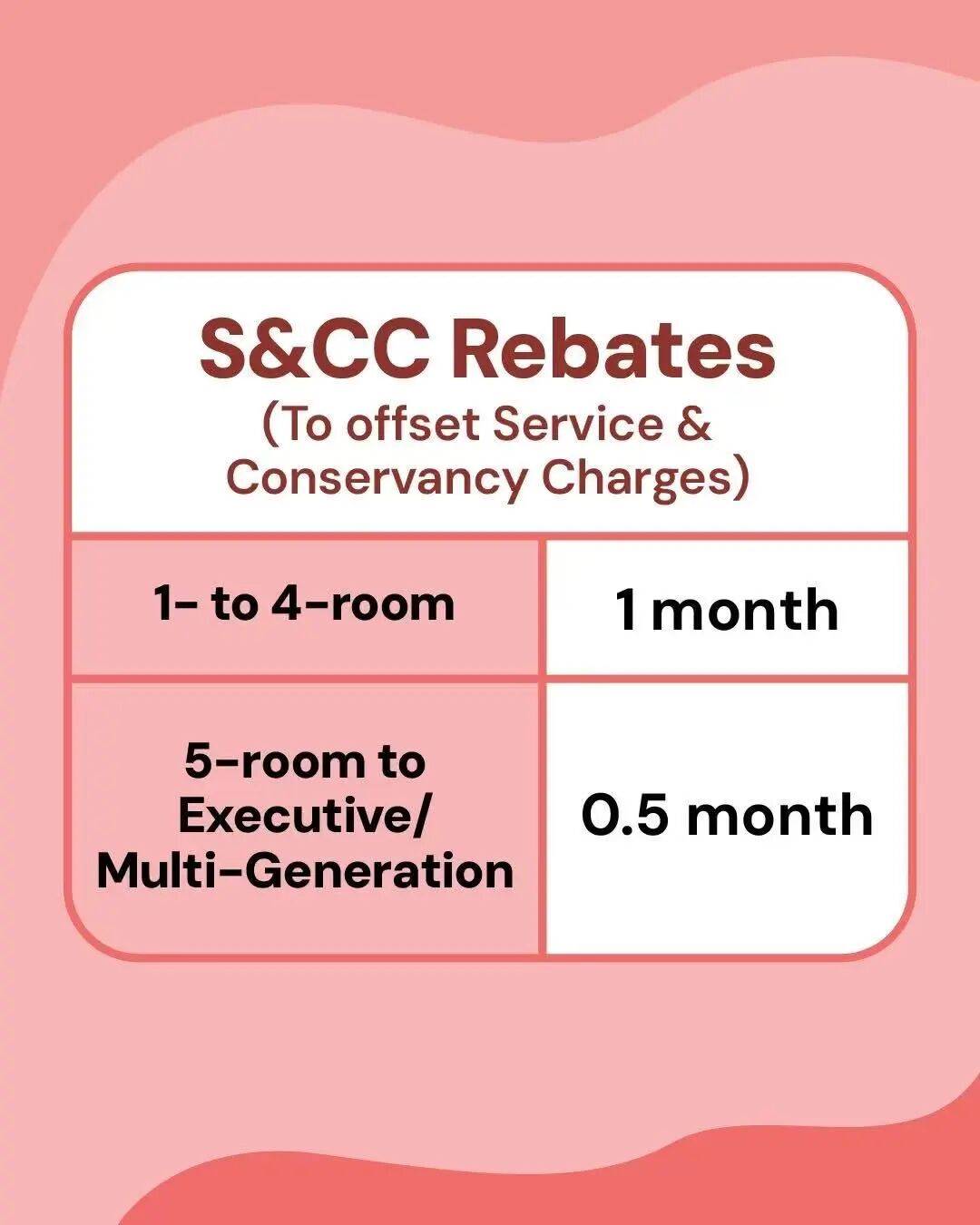 根据财政部的公告,回扣分两块:一块是U-Save水电费回扣,另一块是S&CC(服务与杂费)回扣。符合条件的组屋家庭在4月会收到最高190新元的U-Save回扣,具体多少看房子大小。同时还能拿到最高一个月的S&CC回扣,也是按房型来算。