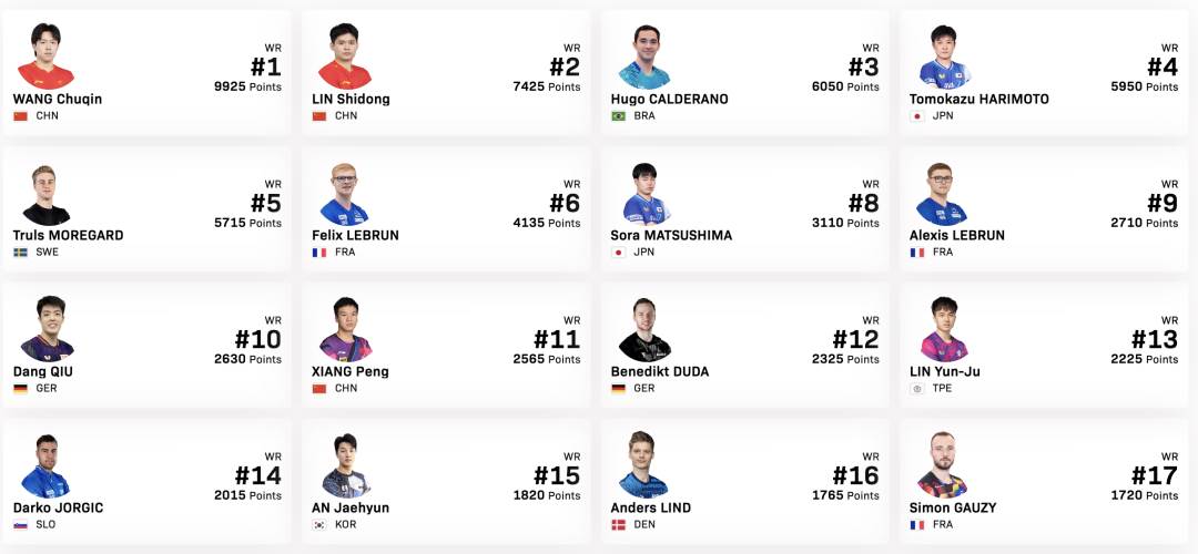 2026赛事部分男选手名单 图源:WTT