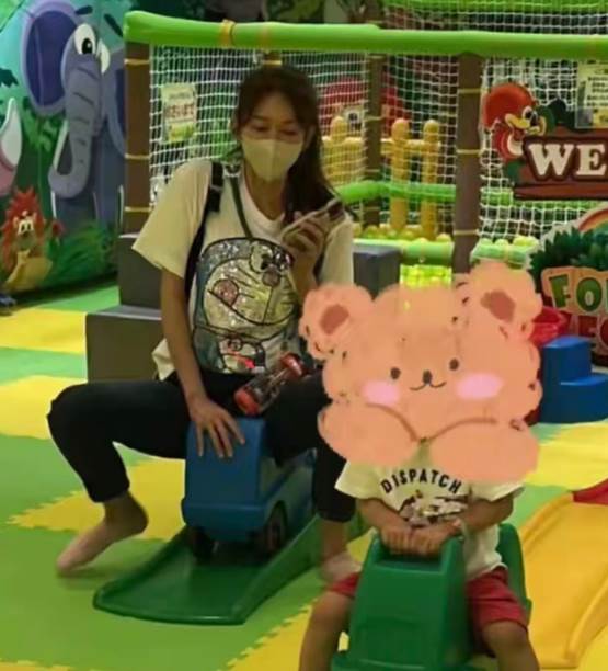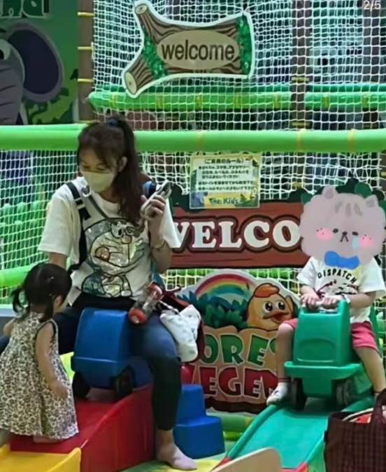 被网友拍到在游乐场带娃