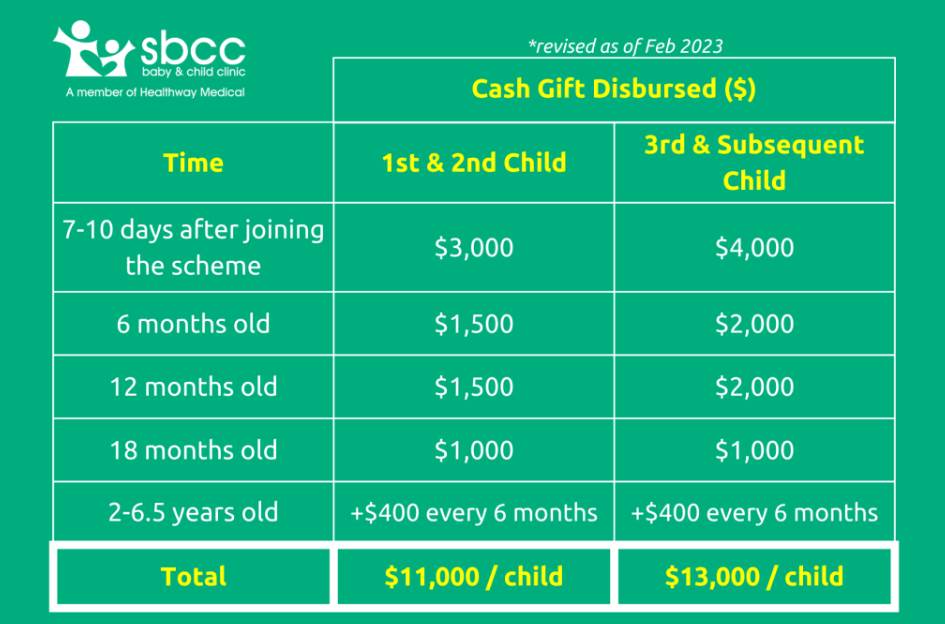 先说Baby Bonus,这是一笔直接发给父母的现金补助。第一个和第二个孩子,每个宝宝可以领到11000新元;从第3个孩子开始,补助会更高,每个孩子能拿到13000新元。
