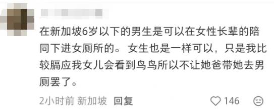 然而真正的原因是:“在新加坡6岁以下的男孩是可以在女性长辈的陪同下进女厕所的。6岁以下的女孩同样也可以进男厕。”