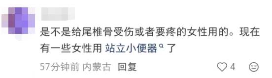 对此,有网友表示,可能是给尾椎骨受伤的女性用的站立小便器。
