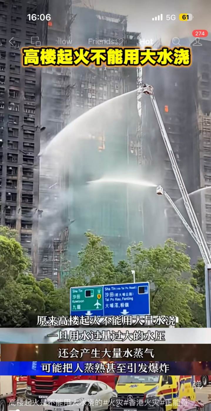 这些伪专家说,“原来高楼起火不能用大量水浇,一旦用水过量,过大的水压还会产生大量水蒸气,可能把人蒸熟,甚至引发爆炸”。