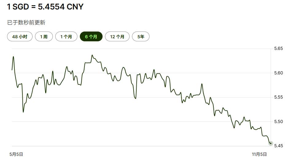 昨天(11月5日),新币兑人民币的汇率已跌至5.45,汇率来到了半年来的新低。