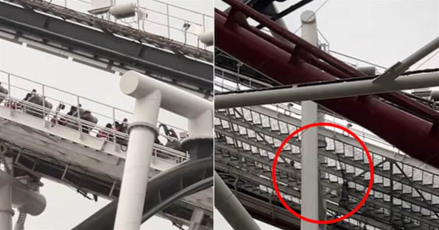 据网民_vannyboo在TikTok发布的视频及配文显示,事发时过山车在半途停驶,乘客被困半空且恰逢大雨。