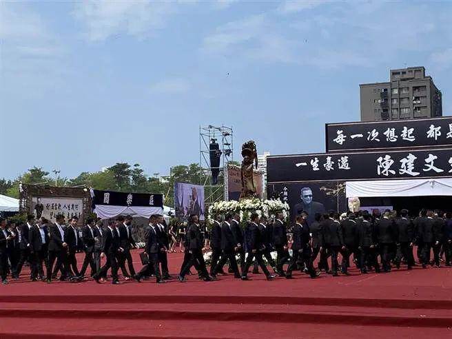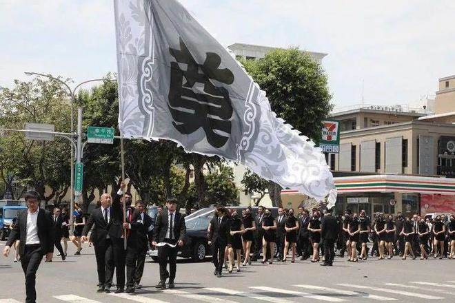 初略估計有3000多名黑幫成員到場送行,一律黑西裝、領帶及白襯衫。