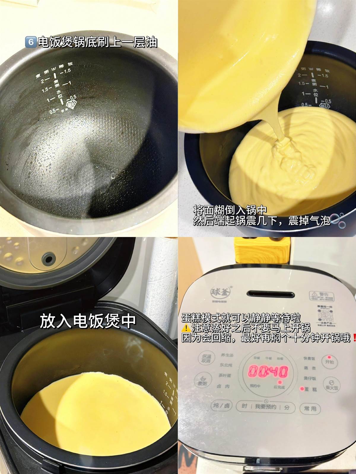 7️⃣電飯煲按蛋糕模式就可以了? ⚠️蒸好之後不要馬上開鍋,因為蛋糕會回縮,最好再燜10分鐘開鍋哦❗️
