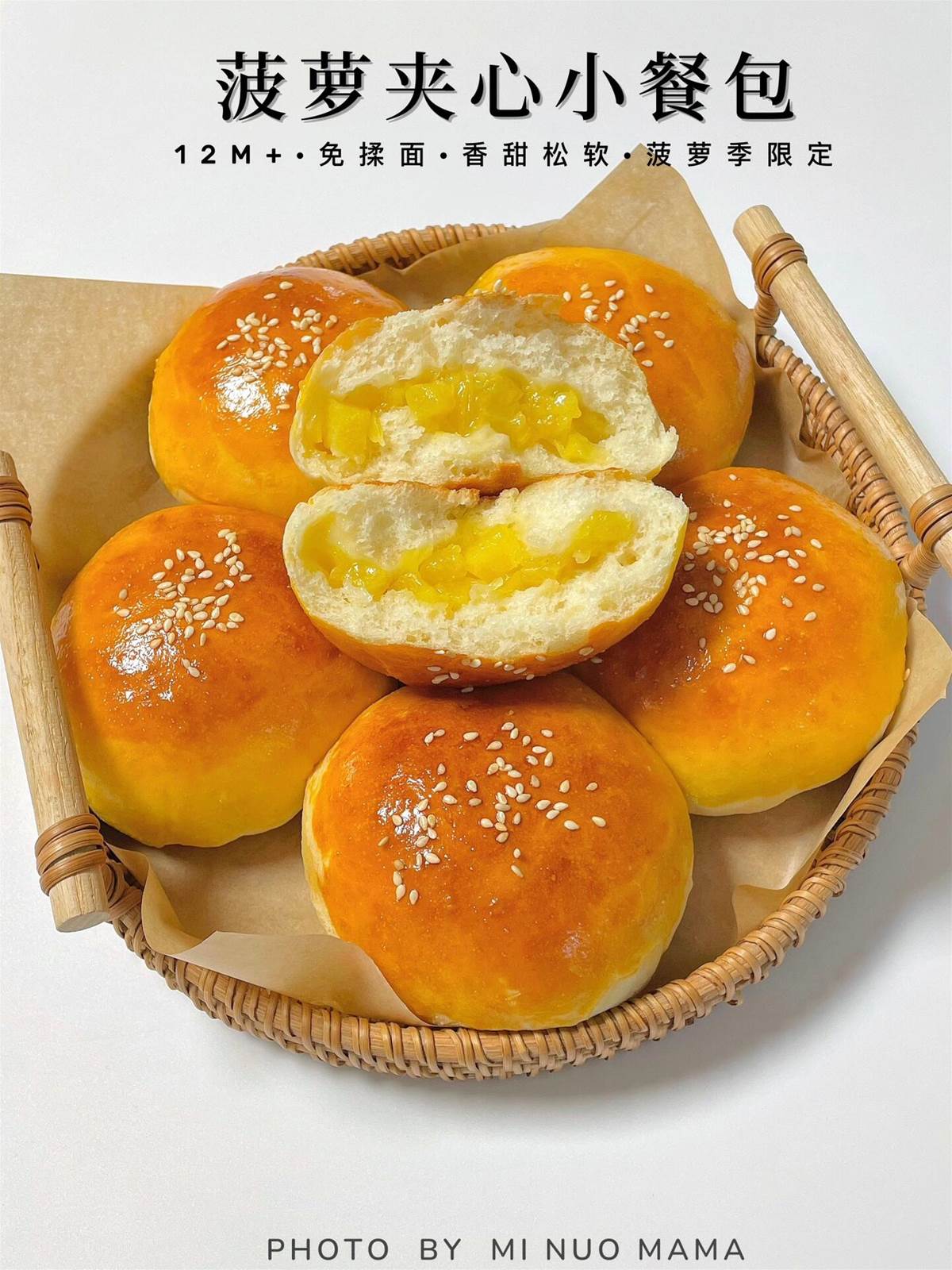 今天我又來分享免揉小餐包來啦,吃菠蘿的季節,一定要去試試這個限定菠蘿夾心小餐包,無需手套膜,烘焙小白也能一次成功,香甜鬆軟我和小朋友搶著吃~