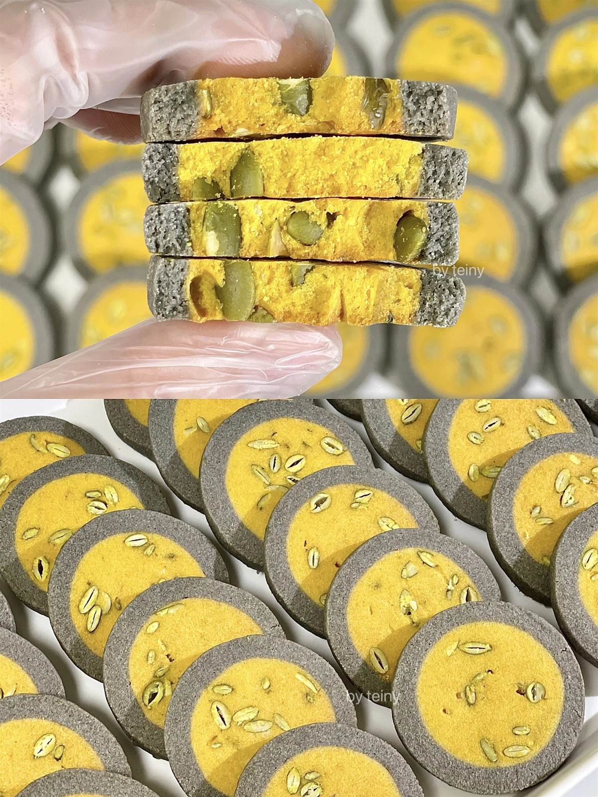 養生的一款曲奇來啦,黑芝麻+南瓜,搭配南瓜籽仁香香脆脆真的好好吃