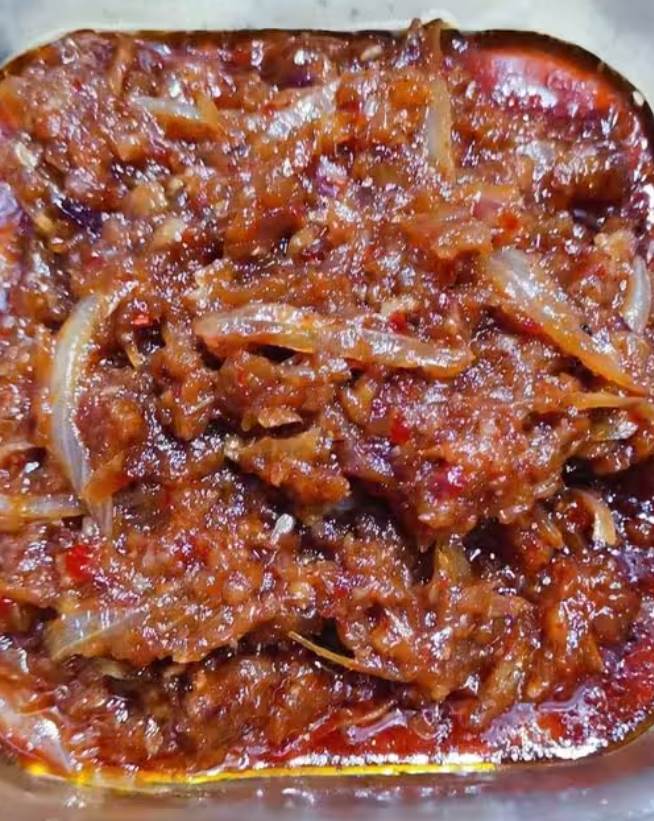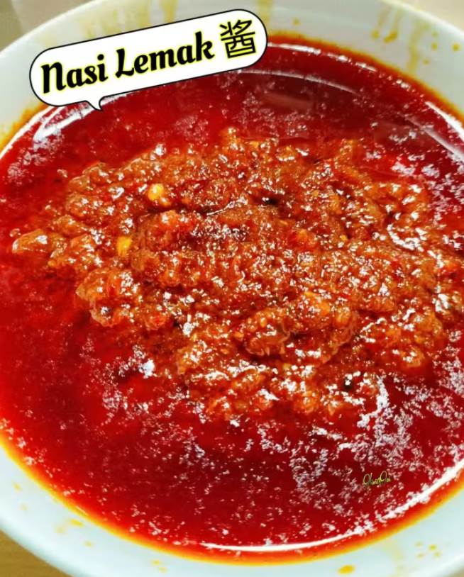 材料:辣椒幹 1把 (加水泡軟,備用)紅辣椒 5條 (切片)紅蔥頭 6粒 (可以再加)大蔥 1粒蒜 5瓣belacan 1寸 (煎香,備用)(也可以不放)辣椒糊(cili boh) 5湯匙糖和鹽各適量 (依各人喜歡)江魚仔 1把 (炸至金黃)水適量 (攪拌機攪得動為準)