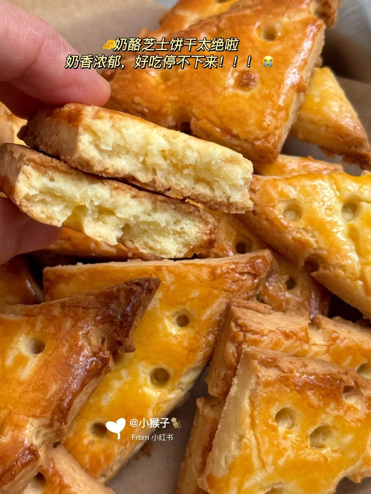 每一塊都金黃金黃的跟乳酪一樣似的,一口咬下餅乾很香脆帶著濃郁的奶香味,好吃到沒有朋友,早餐下午茶喝杯咖啡追追劇就吃它,不要太滿足了呦!!!