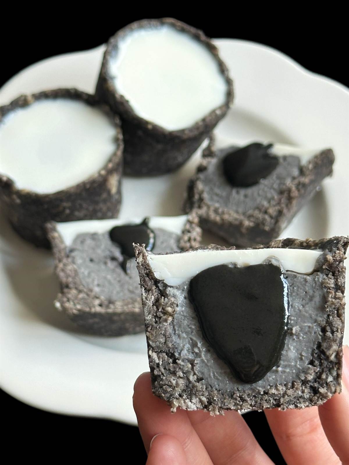做一個多重口味的黑芝麻奶凍燕麥撻 撻底是黑芝麻燕麥味道的