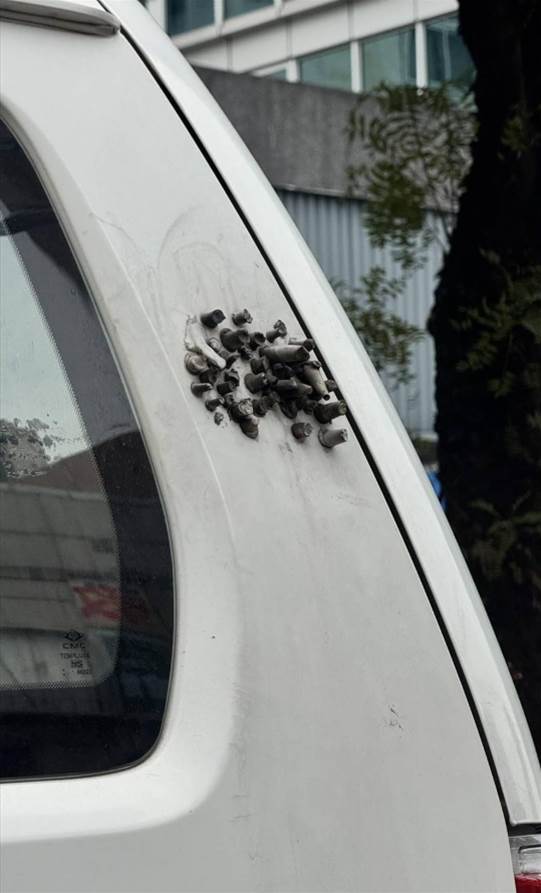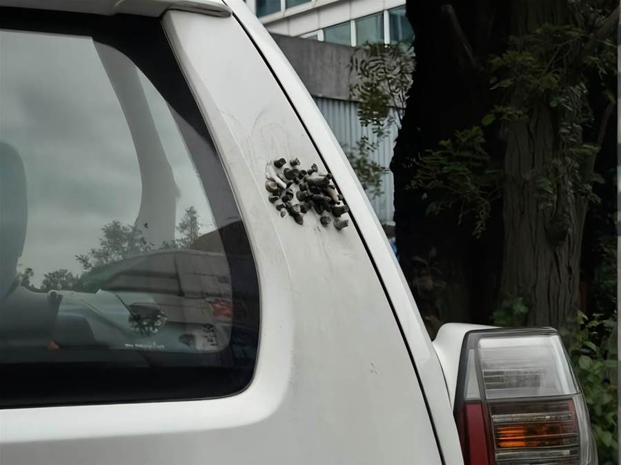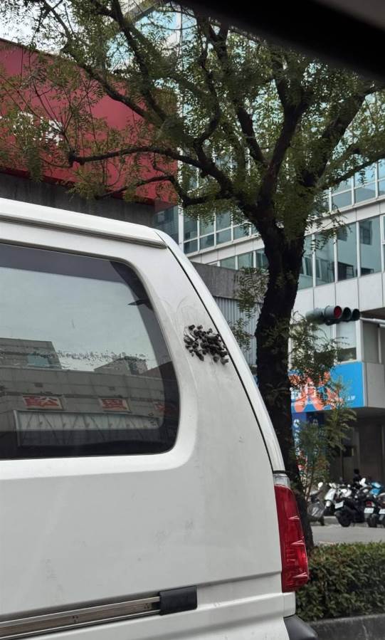 其实这团「怪东西」在台湾路边根本是「常客」,尤其白车最容易中招。先排除女儿担心的「虫子结巢」—— 毕竟没哪种虫会在等红灯的三分钟内,神速堆出这么大一团「作品」。