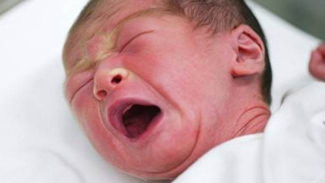 嬰兒出生時皮膚有皺紋。原因是寶寶長時間浸泡在羊水裡,皮膚變得皺巴巴的。等了幾天,他們慢慢恢復。