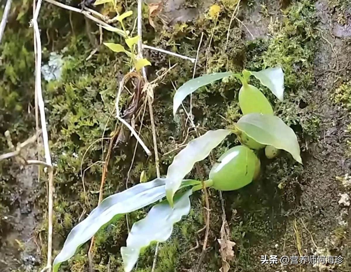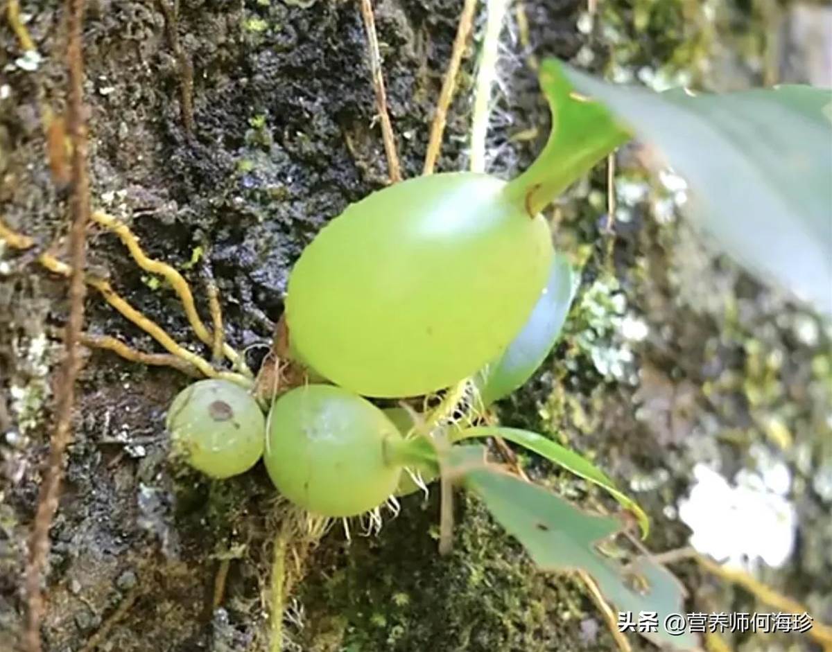 這種長在石上的「仙桃」,其實就是一種天然的野生植物,因其喜歡生長在深山老林的石壁上,這種地方給人的感覺就是有仙氣,而它的地下假鱗莖碩大如桃,青如碧玉,于是就有仙氣飄飄的名字「石仙桃」。