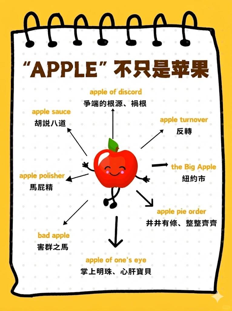 誰懂啊!原來我們天天吃的水果,在英語里藏著這麼多驚喜玩法???? 別再以為 apple 只是蘋果啦! ?bad apple = 害群之馬 ?apple of one’s eye = 心肝寶貝 香蕉 banana 也不簡單: ?go bananas = 發瘋抓狂 ?top banana = 團隊一把手