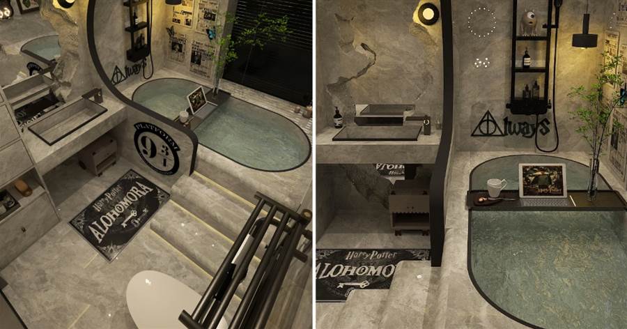 當你推開這扇 「魔法之門」,就踏入了一個融合現代舒適與霍格沃茨情懷的獨特空間。這間浴室的設計,不僅是對哈利・波特世界的致敬,更是一次將情懷與實用完美結合的裝修實踐。