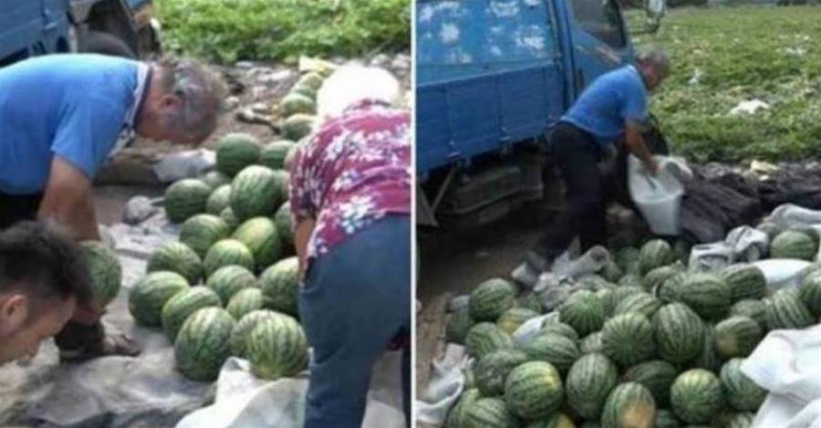一名老農夫以種植西瓜為生,沒想到竟然被對方棄單,三千顆西瓜無人接手只能放在路邊爛掉,