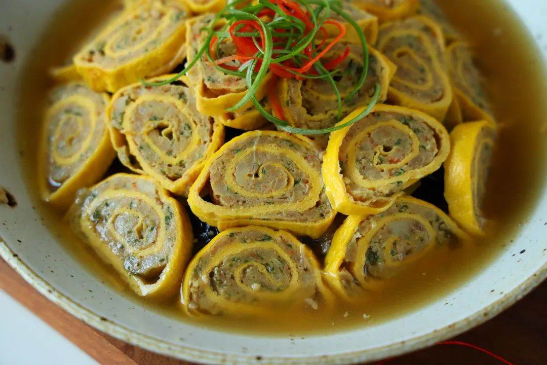 蛋卷湯鍋,一道讓人垂涎欲滴的家常美味,它不僅僅滿足了味蕾的需求,更是視覺與營養的雙重盛宴。那金黃色的蛋卷,包裹著鮮美多汁的肉餡,每一口都是滿滿的幸福感。搭配上清新爽口的黃花菜和木耳,再淋上濃郁的高湯,整個菜品彷彿被賦予了生命,色彩鮮豔,層次分明,讓人一眼難忘。