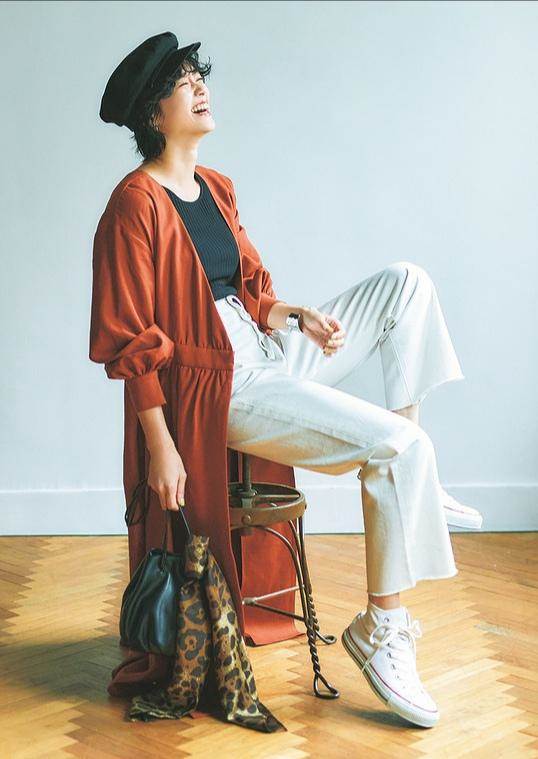 一些年齡稍長的女性在搭配服裝時,往往會陷入一個誤區,那就是經常用黑色來裝點自己,認為這是一種絕對不會出錯的穿衣方式。其實總是穿黑色或是經典的色系,自然不會給個人的穿搭「拖后腿」,但難免看久了會覺得膩味。這時可以選擇一些其他的色系來豐富自己的衣櫥。可以用一款暗橘色的長外套來穿出韻味,內搭一件黑色的T恤。