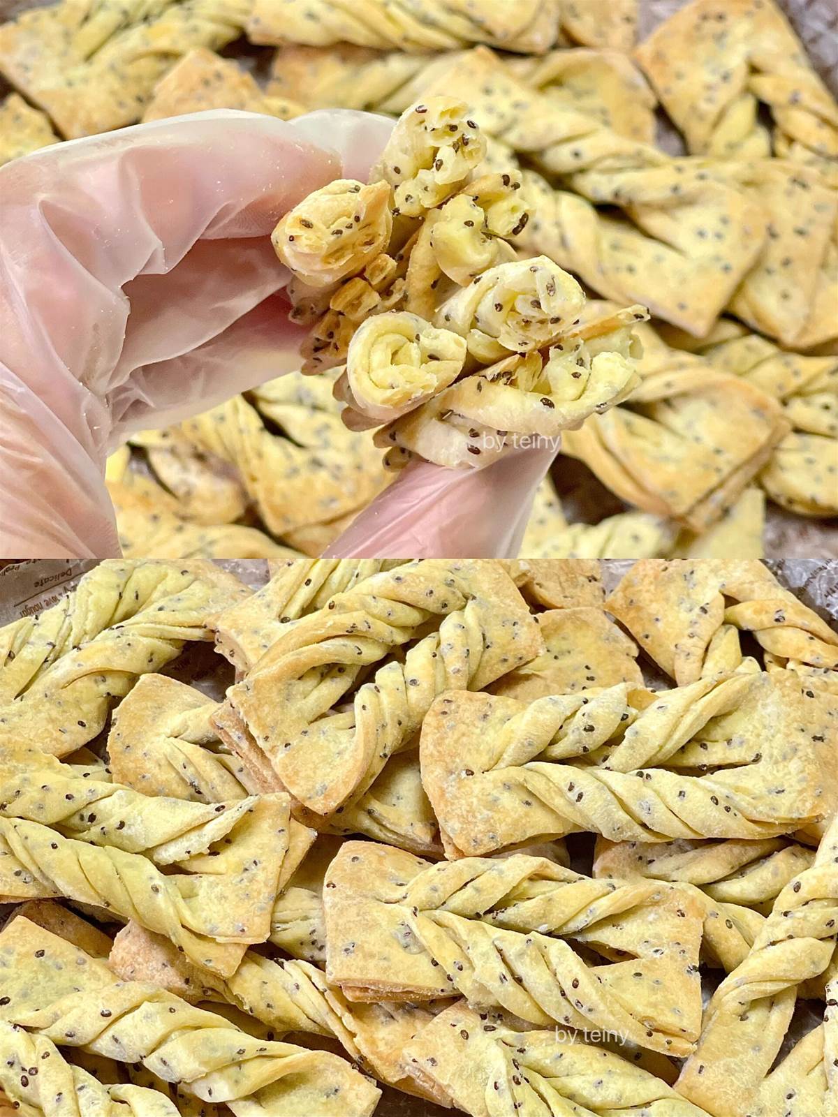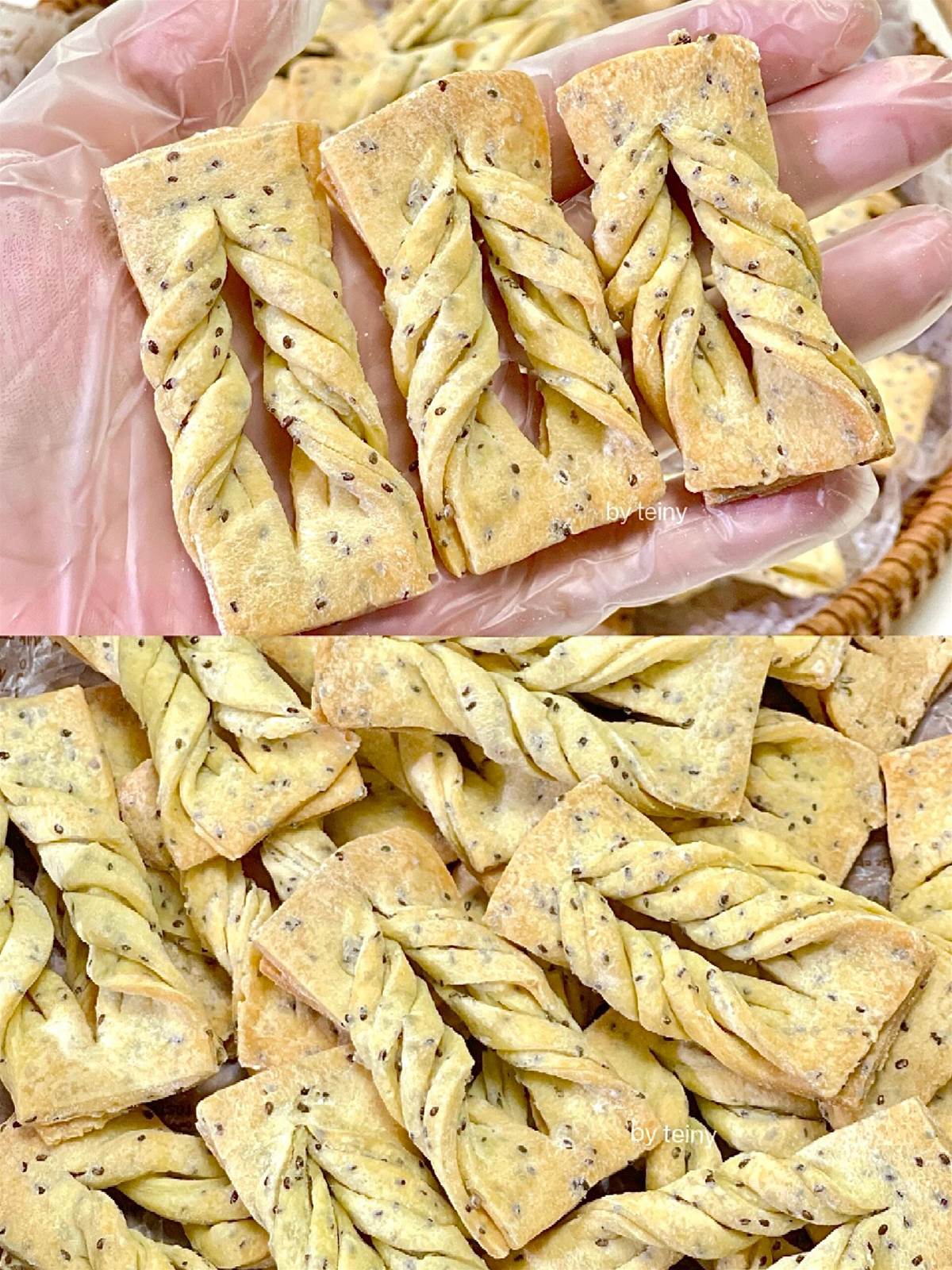 消耗一波中筋麵粉,免油炸版本,烤箱和空氣炸鍋都可以做,酥酥脆脆還挺好吃的,微鹹的口感,加了奇亞籽,減脂期做解饞小零食真的很不錯,食材都是日常易得的,不用買復雜配料,成本低還健康,越嚼越有谷物的香味~