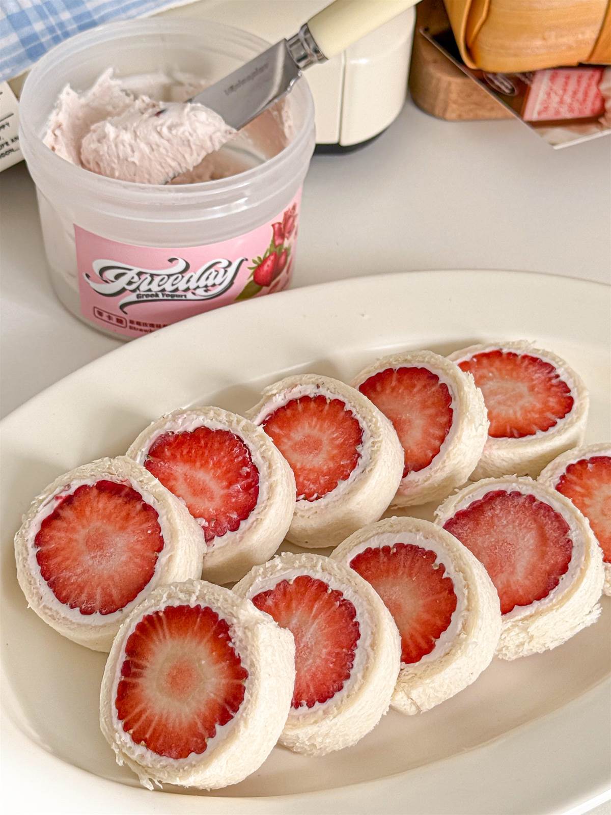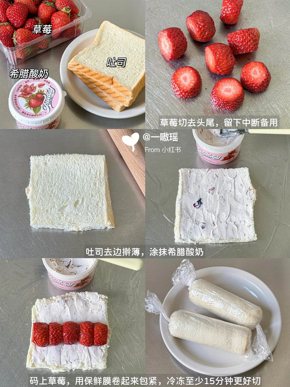 食材準備: ・吐司 ・草莓 ・希臘酸奶(一定要選很濃稠的那種)