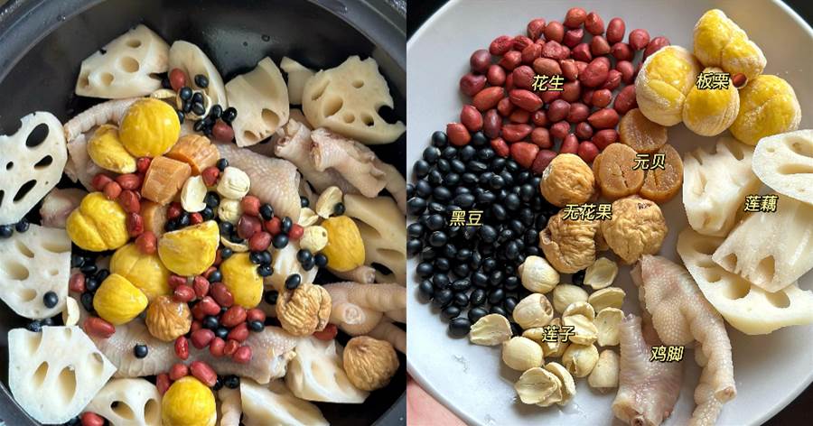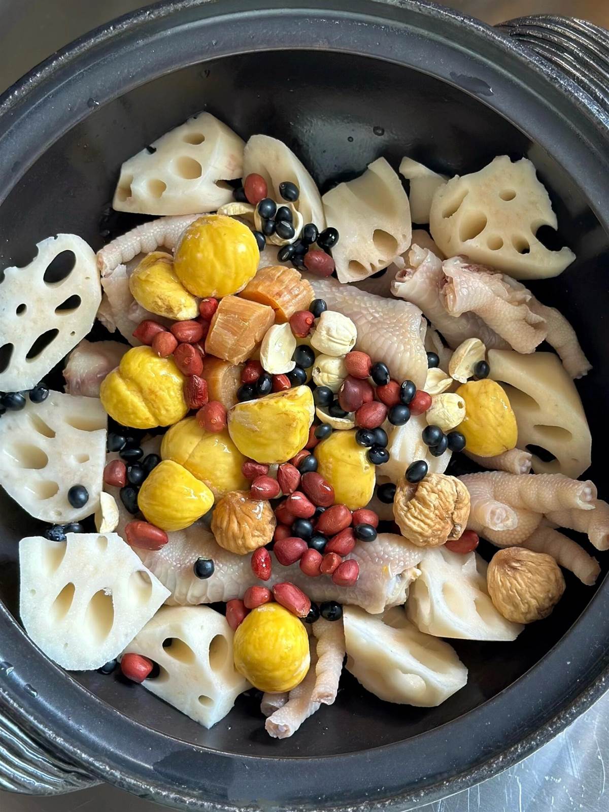 ▪️食材: 板栗、紅衣花生、黑豆、蓮藕、元貝、蓮子、無花果、雞腳/豬骨 .