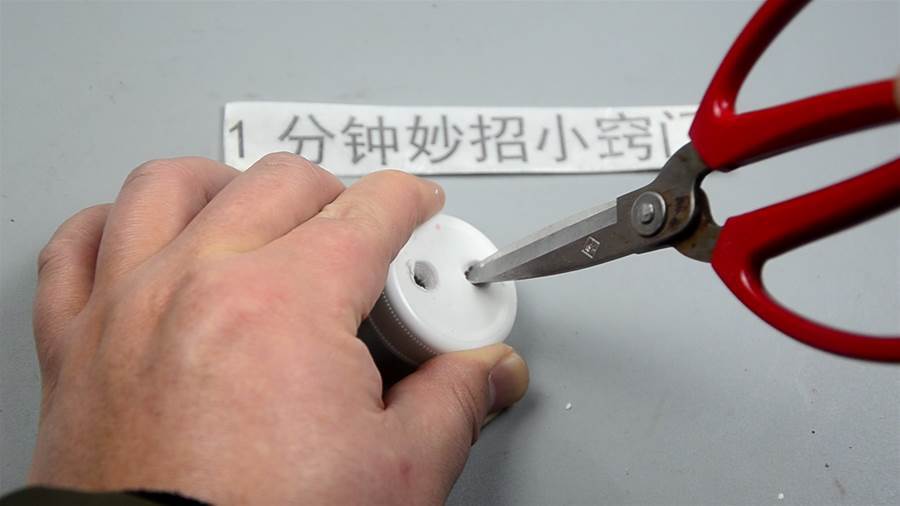 首先我們在塑膠瓶蓋上面鑽出兩個小孔,小孔的大小不要大于筷子的大小,要使筷子能夠插到小孔裡面。