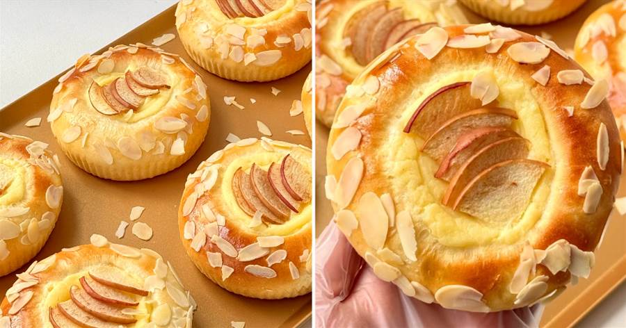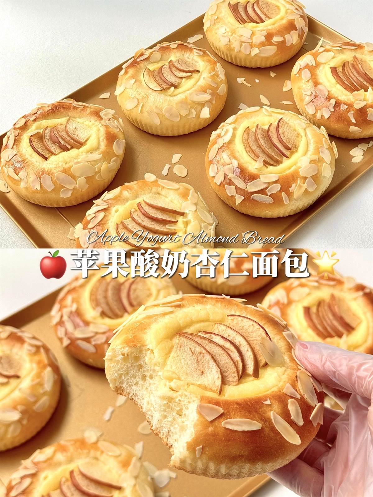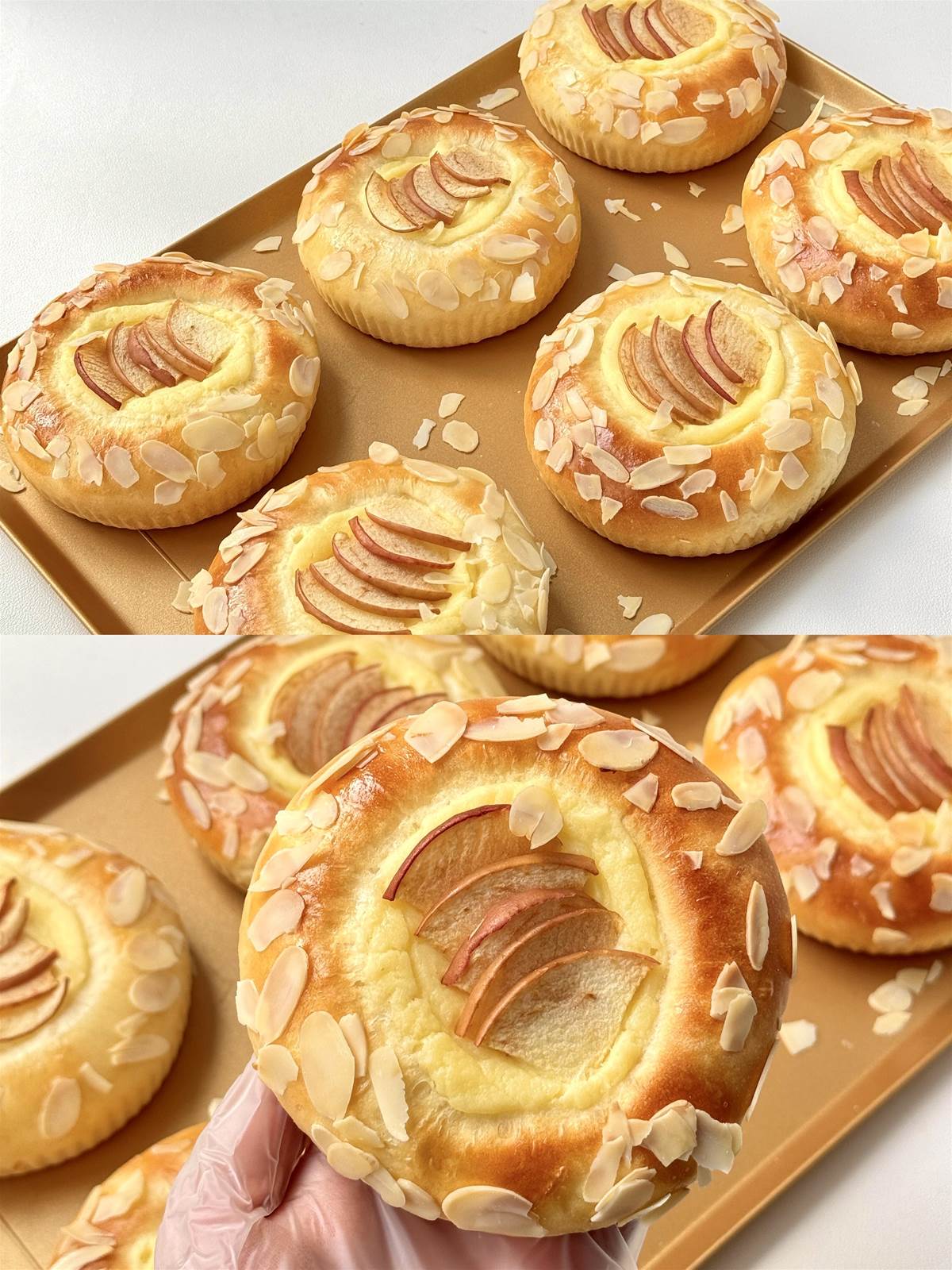 蘋果酸奶杏仁麵包,咬下一口,是蘋果的清甜爆汁撞上酸奶的柔潤酸甜,表層杏仁脆香撲鼻。