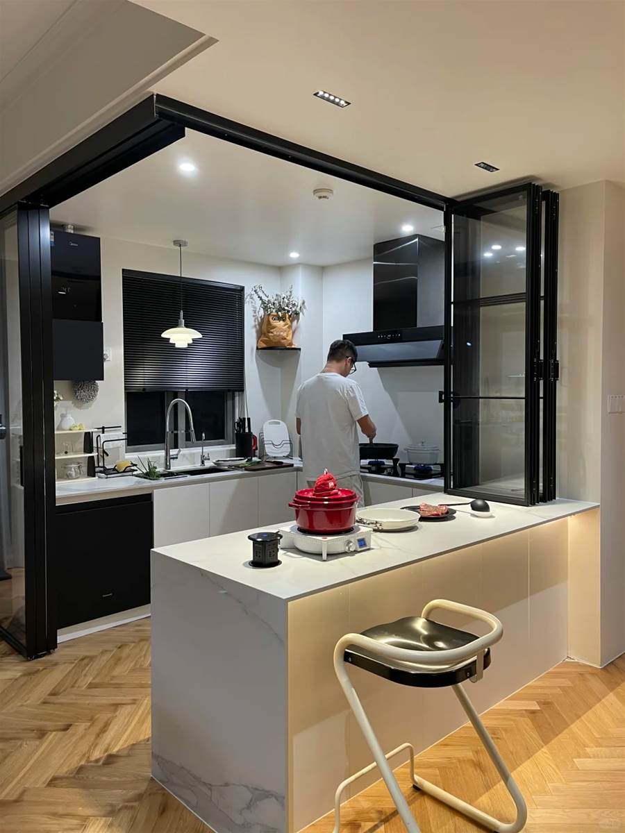 物業管家說:你家的廚房設計在小區出名了!后面好多同戶型的鄰居都來抄作業~ 也有很多粉絲小伙伴問各種關于廚房的問題 今天給大家分享一下我家的廚房設計思路~ · 我定義它為敞開式廚房,平時既能做開放式 偶爾爆炒煎炸油煙大,也能封閉起來!