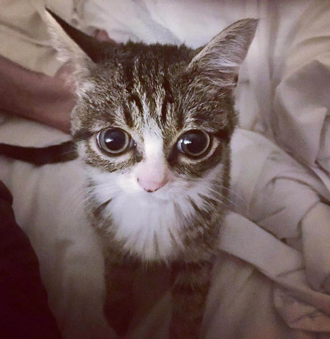 到了收容所后,一只擁有一對圓圓大眼睛的貓咪,立馬吸引了他們的注意...