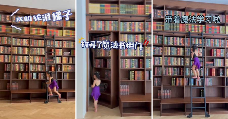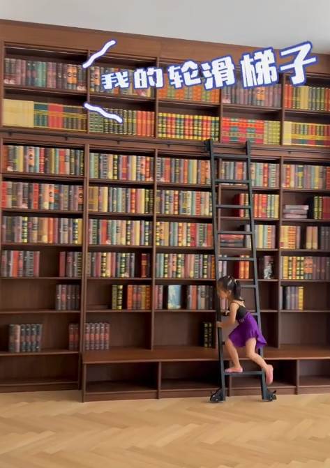 當小女孩踩著滑輪梯,在整面墻的書海中輕巧攀爬時,這面頂天立地的書柜便不再是單純的傢俱,而是家的精神地標。這種 「整面墻書柜 + 滑行梯子 + 隱藏門」 的一體化設計,正成為越來越多屋主的裝修首選,它將空間利用、收納功能、美學表達與生活儀式感融為一體,每一處巧思都藏著對生活的極致考量。
