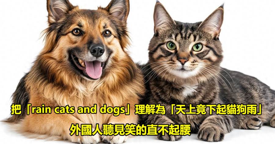 rain 是 「下雨」,cats and dogs 是 「貓和狗」