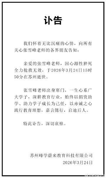 一紙訃告輕飄飄落下來,41歲的張雪峰,就這麼匆匆走了,連一句像樣的告別都沒能留下。