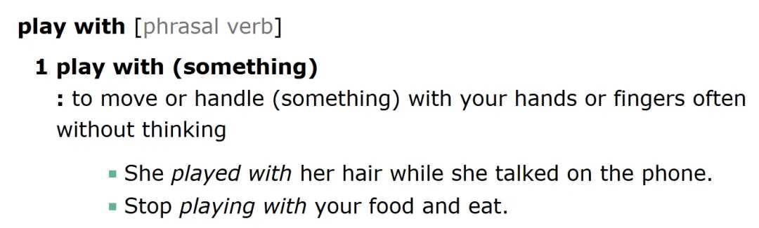 比如「玩玩具」是play with toys,「玩頭髮」可以說play with somebody’s hair