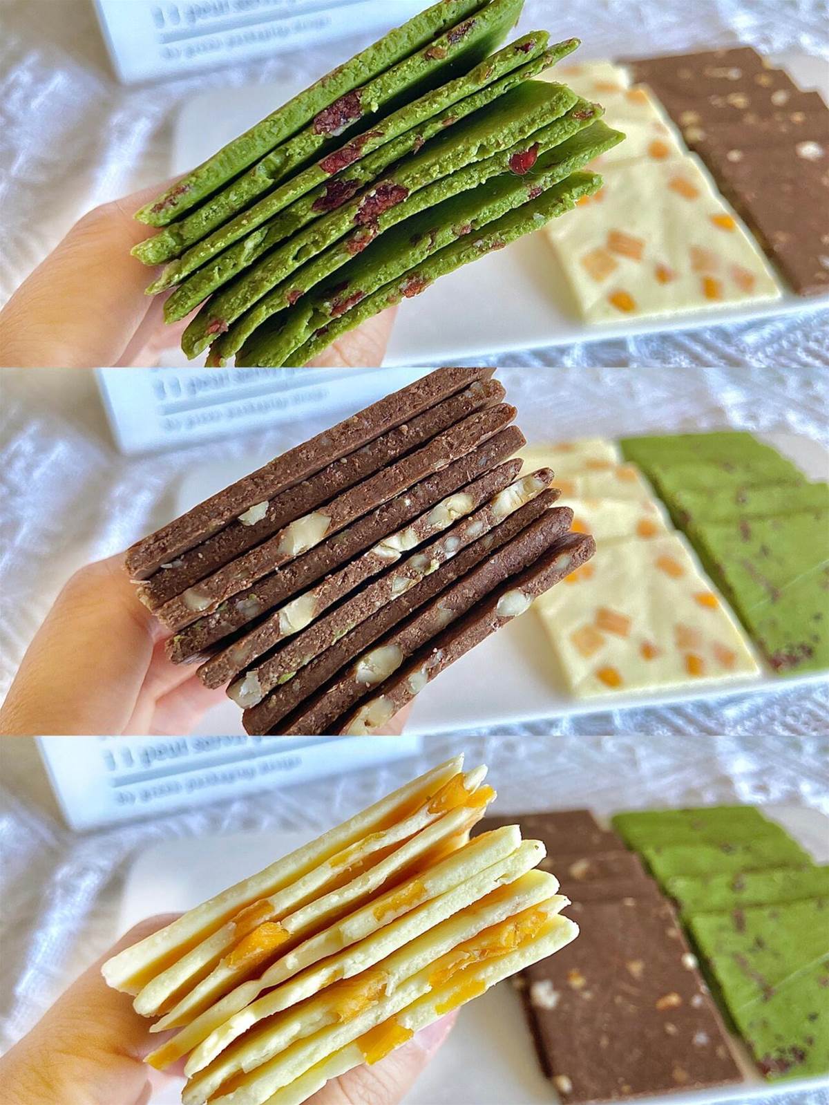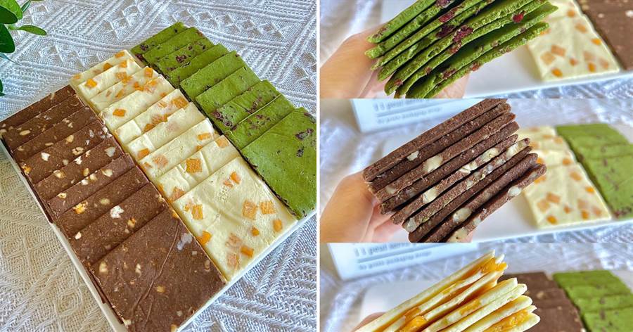 ❷ 油紙包裹麵糰搟薄,冷凍2小時後取出切塊,每口都有堅果香和可可醇味,越嚼越上頭✨