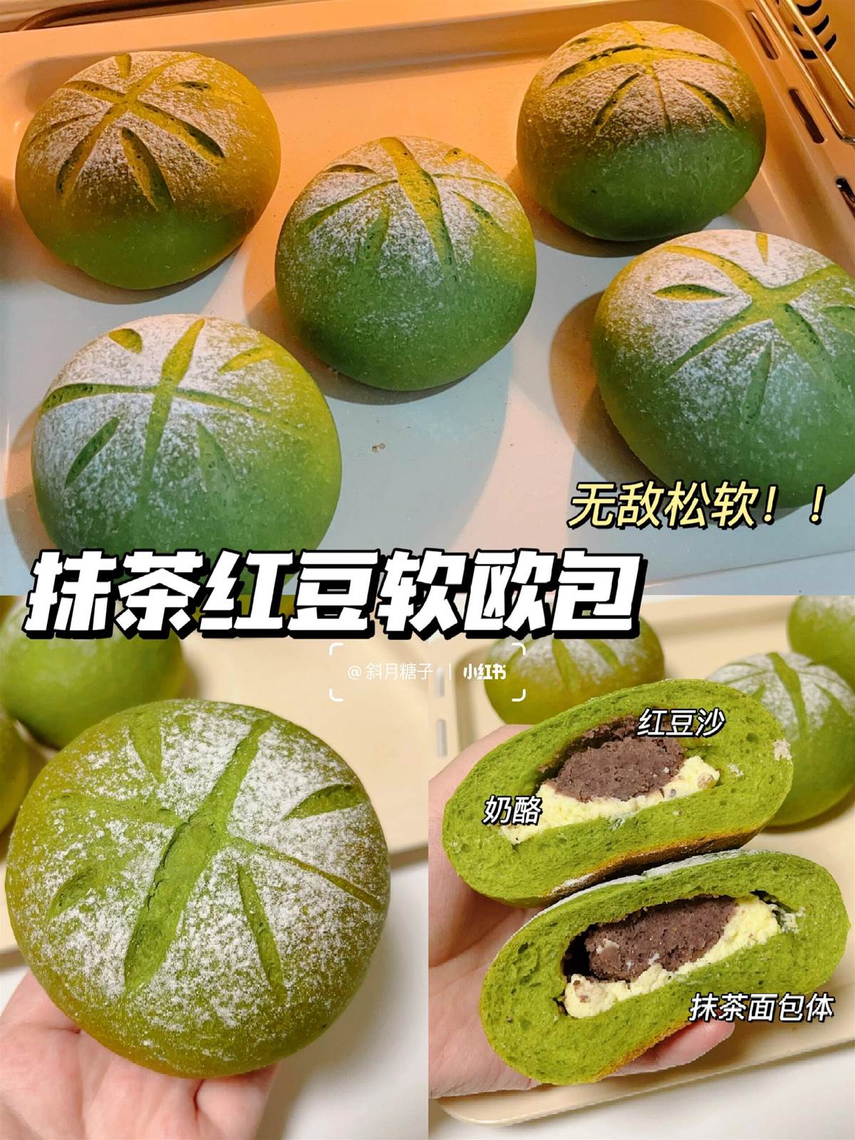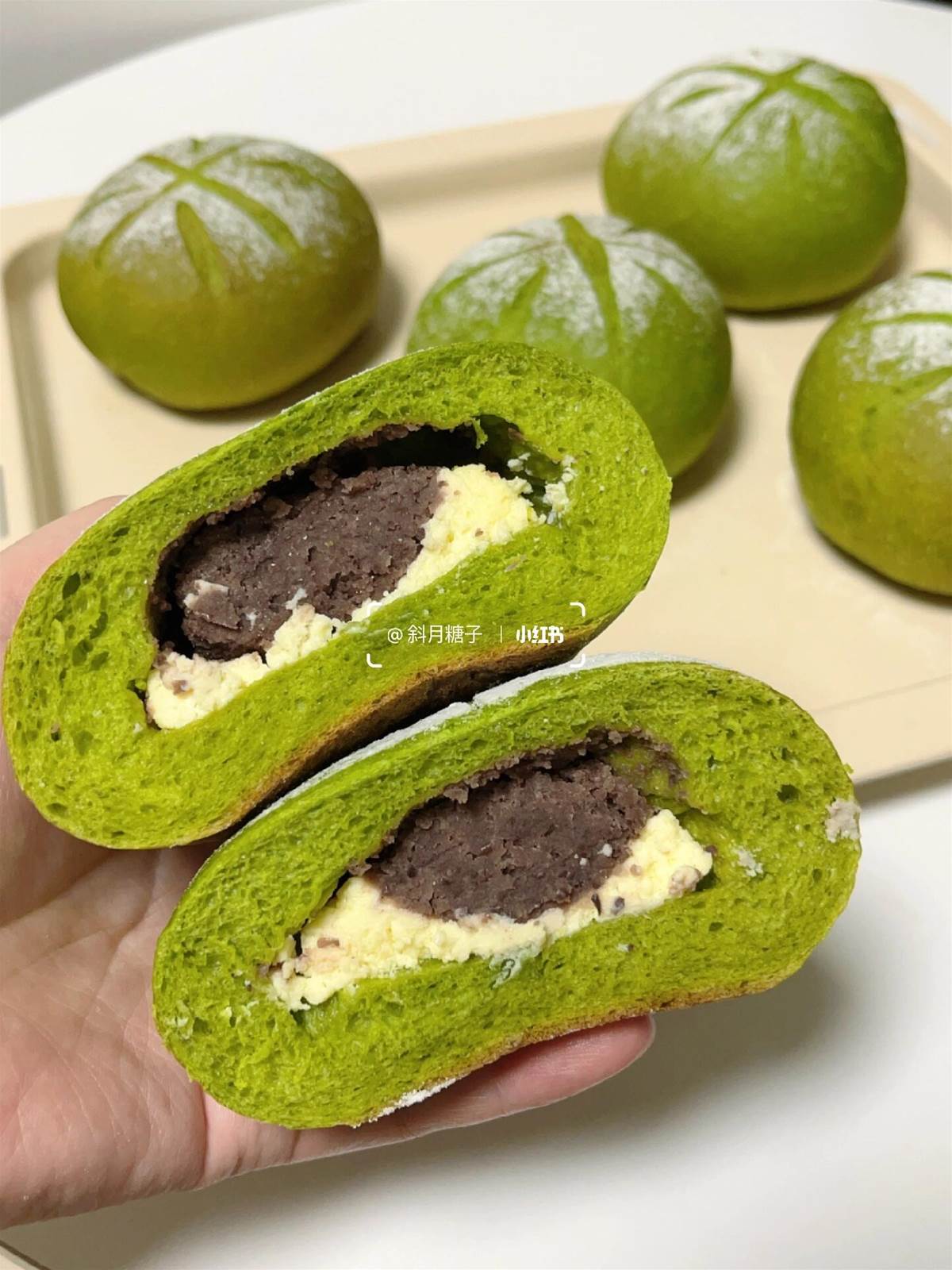 一次成功教程!!抹茶紅豆乳酪軟歐包