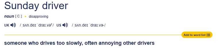 中文釋義:開車太慢,經常惹惱其他司機的人