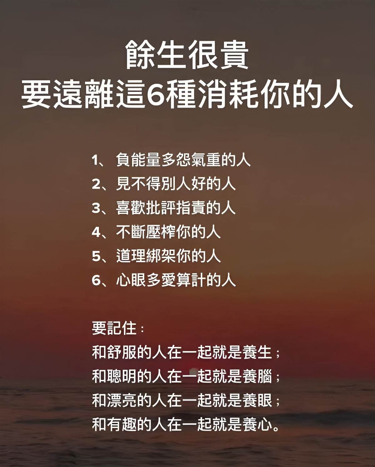 餘生很貴,請遠離這六種消耗你的人時光如流水,一去不復返。餘生的每一天,都是生命中最年輕的時刻,值得被溫柔以待,而非浪費在無謂的消耗中。以下六種人,若不及時遠離,便會悄悄偷走你的能量、蠶食你的快樂,甚至拖垮你的人生。