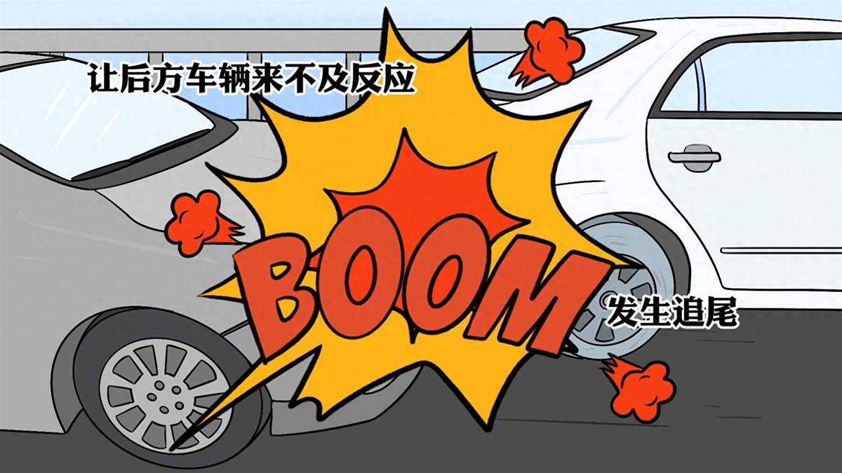 那怎麼辦?你要做的是一邊按住喇叭,打開雙閃,保證第一時間警示附近車輛,讓他們注意到你的情況。一邊根據被遮擋前的記憶路況,盡量保持車速穩定,緩慢松開油門,讓車速自然下降。通過車內后視鏡,觀察與后車的距離,緩慢減速。再通過左右后視鏡,有沒有變道的條件。