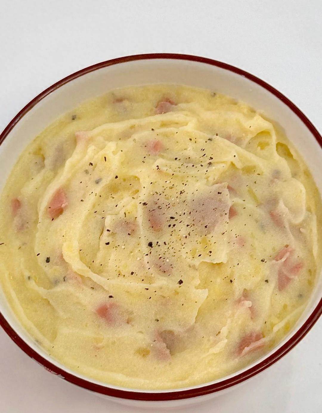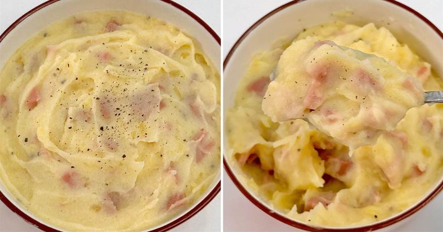 做出來的口感一點都不黑暗,奶香濃郁,土豆泥軟糯,加了火腿粒口感味道絕了。