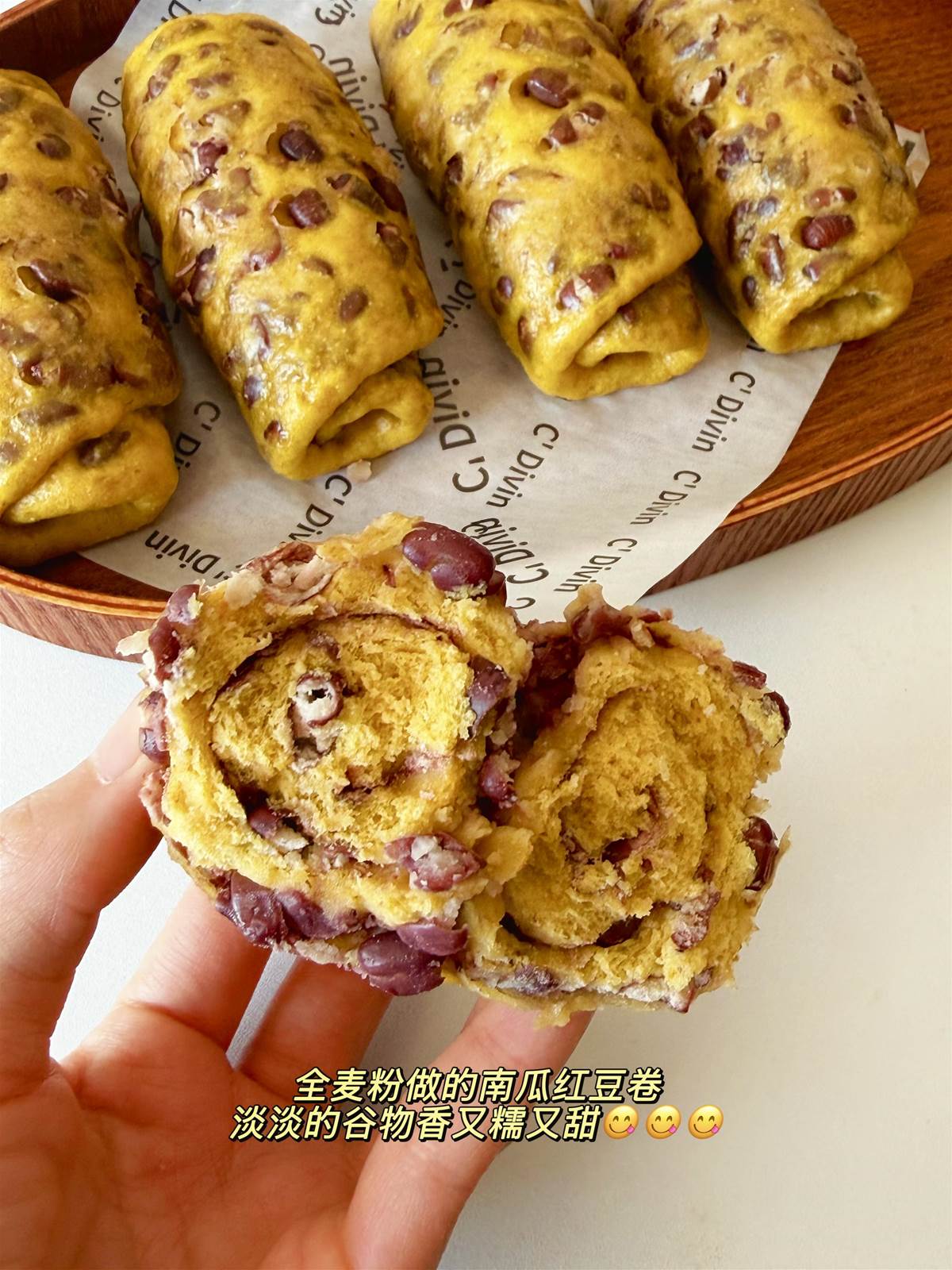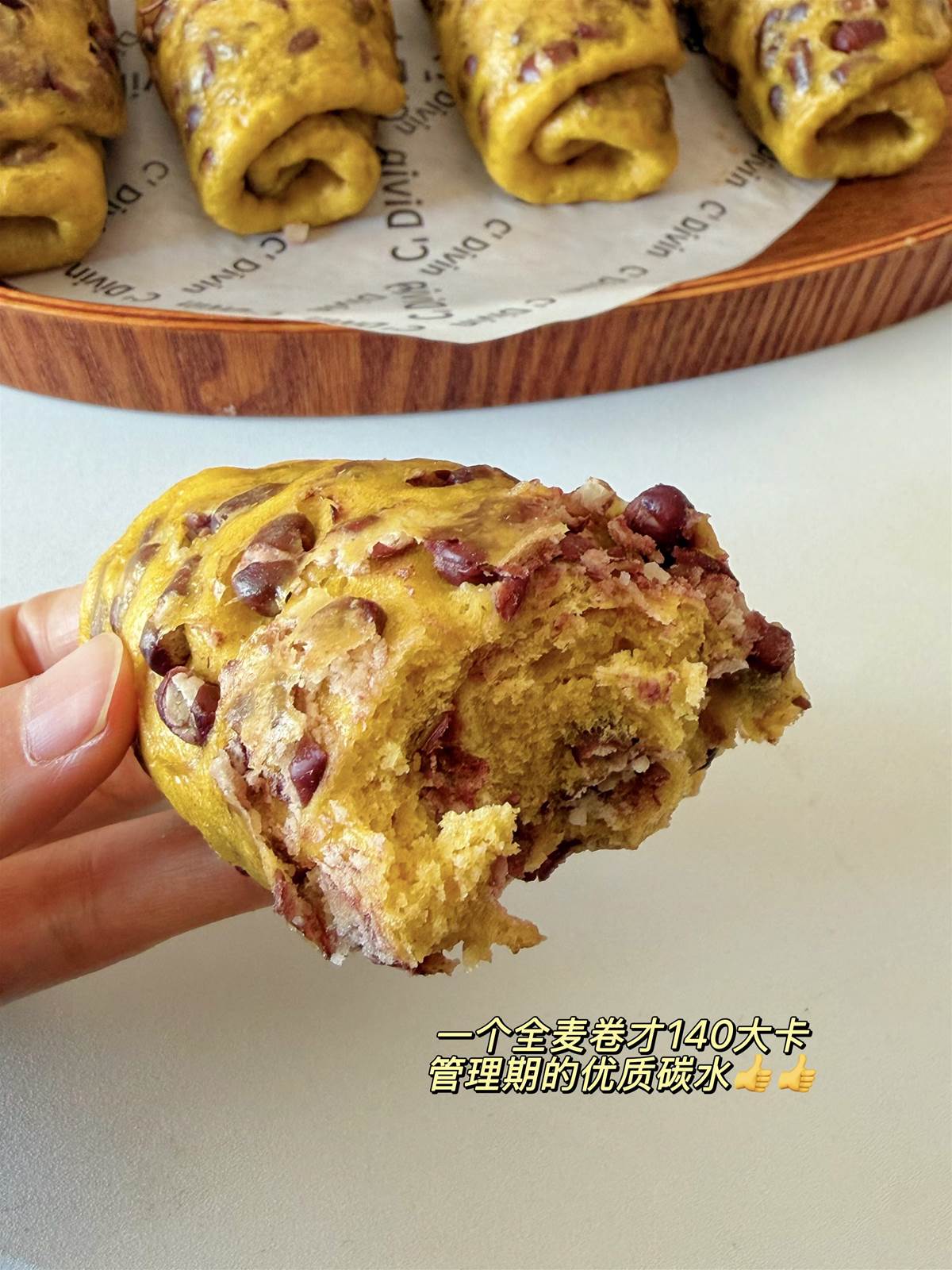 養生女孩必備!無糖無油の南瓜全麥紅豆卷