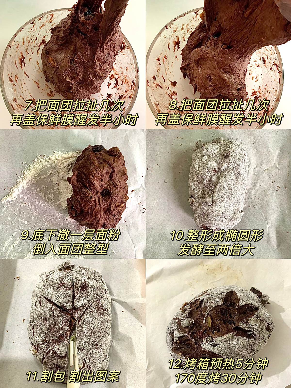 3️⃣ 整形發酵: 撒點手粉,把麵糰整形成橢圓形,放在烤盤上常溫發酵到兩倍大。用刀割出你喜歡的花紋(像我這樣割葉子超美)。
