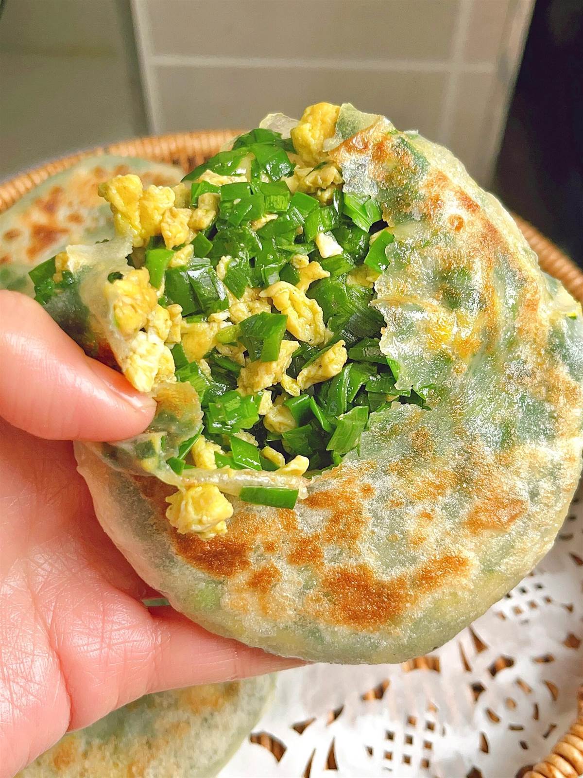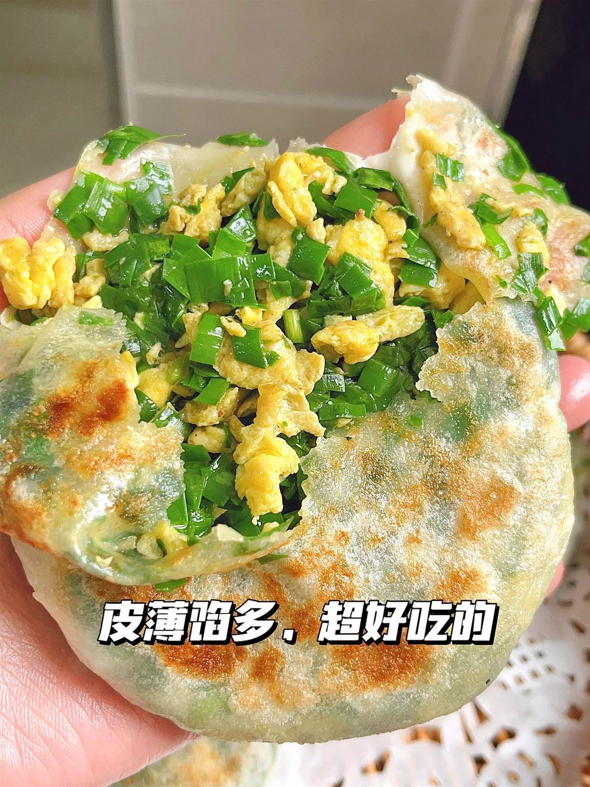 超絕的這個韭菜雞蛋餅,皮薄餡多,味道真的可以說是相當驚豔了