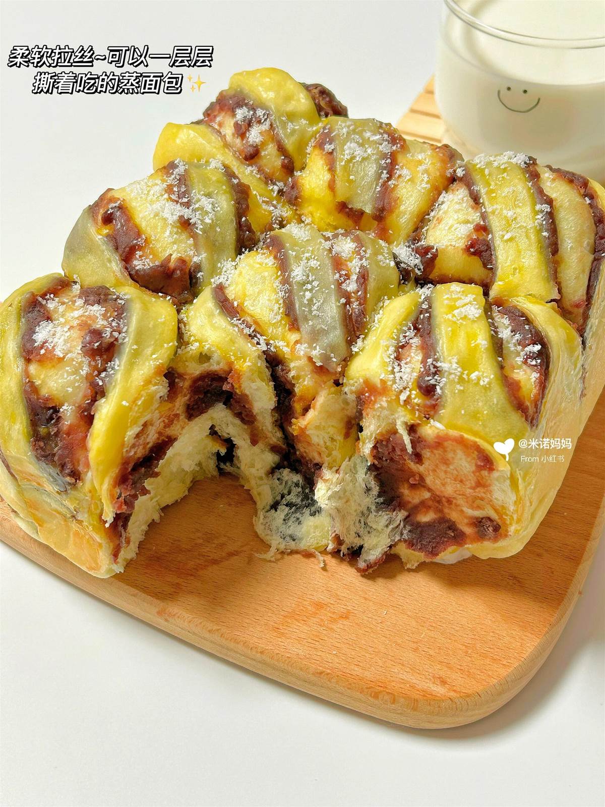 柔軟拉絲,每一層裹著甜甜的豆沙餡,比買的麵包還好吃,蒸的營養好吃不上火,大家都快去做,真的很好吃